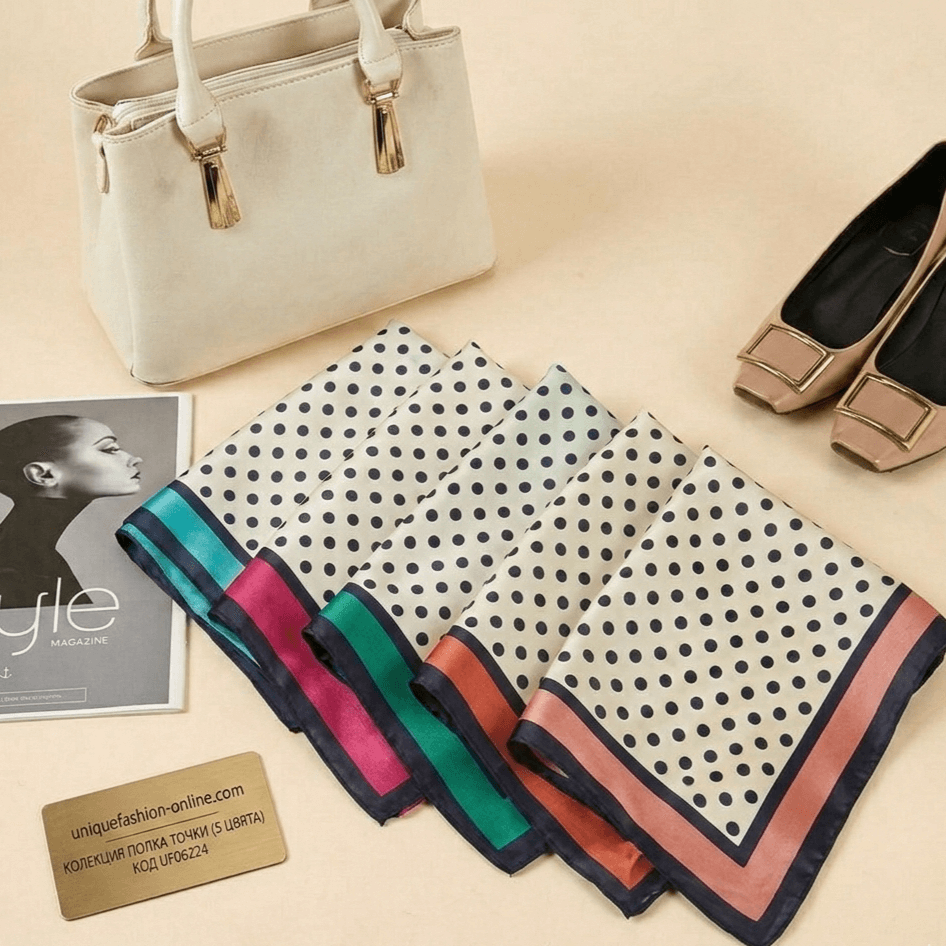 Сатенен шал вискоза на точки 70x70 | Unique Fashion