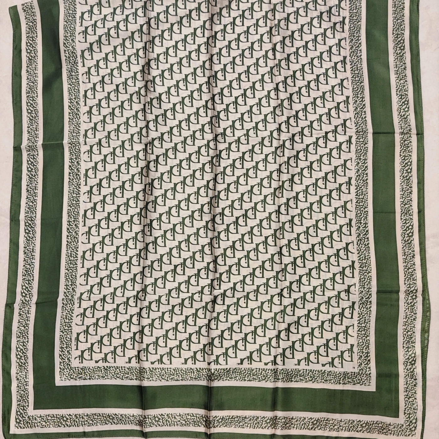 Голям Сатенен Шал с Коприна – Зелен Монограм Дизайн (190/90 см)