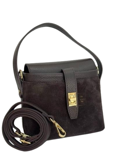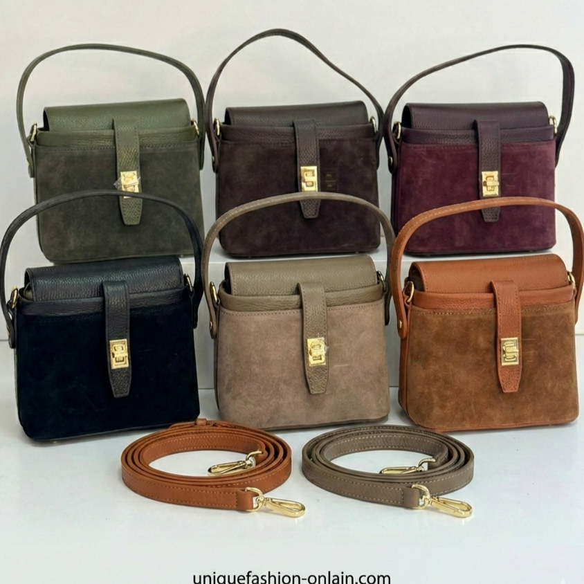 Добавете доза италиански финес към ежедневния си или вечерен аутфит с нашата ексклузивна дамска чанта. Изработена с безкомпромисно внимание към детайла, тя съчетава луксозното усещане на естествения велур със здравината на естествената лицева кожа.