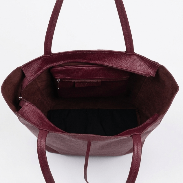 Голяма Италианска Чанта от Естествена Кожа – Цвят Бордо
