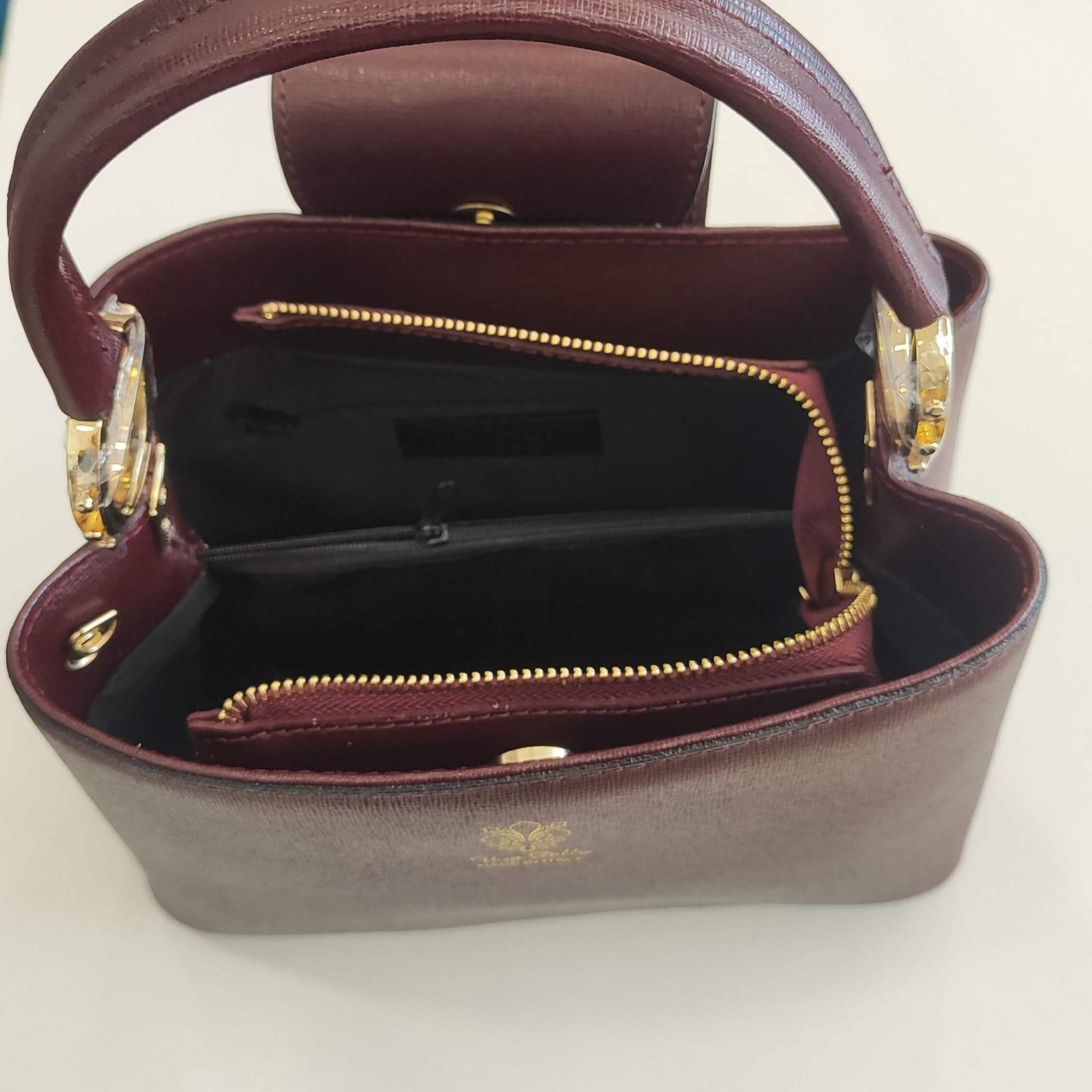 Открийте нашата италианска дамска чанта във винен нюанс.