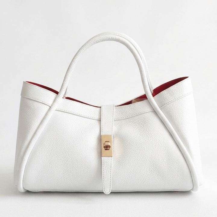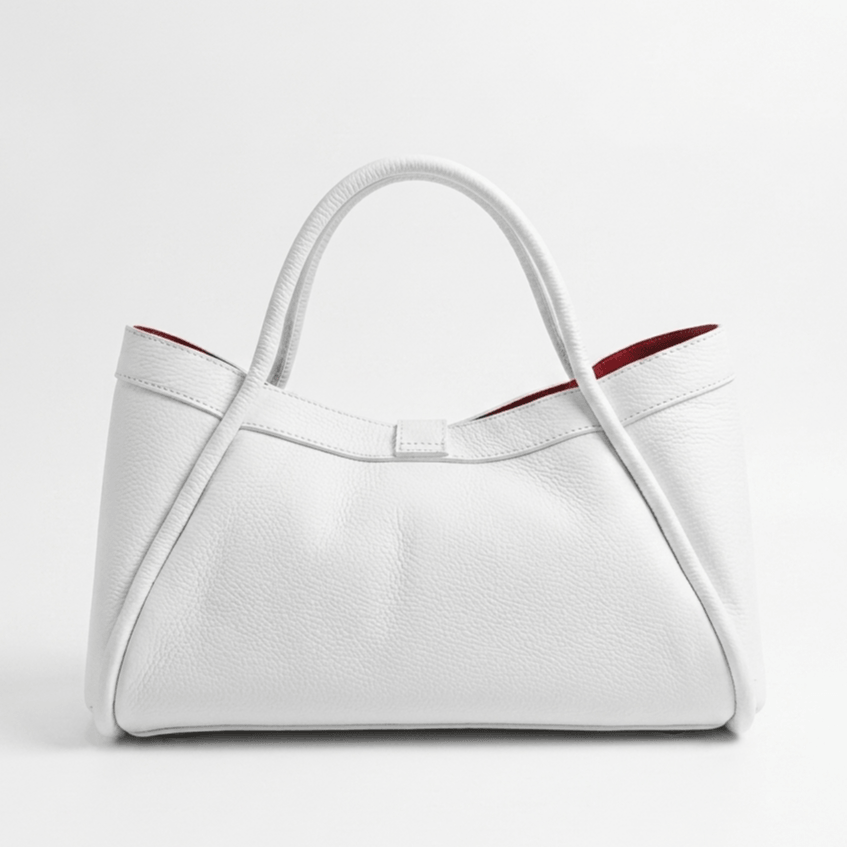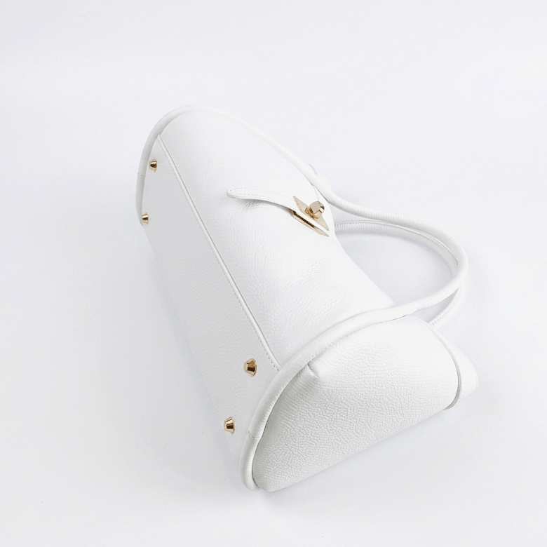 Добавете лукс към визията си с ръчно изработена бяла италианска чанта от телешка кожа.